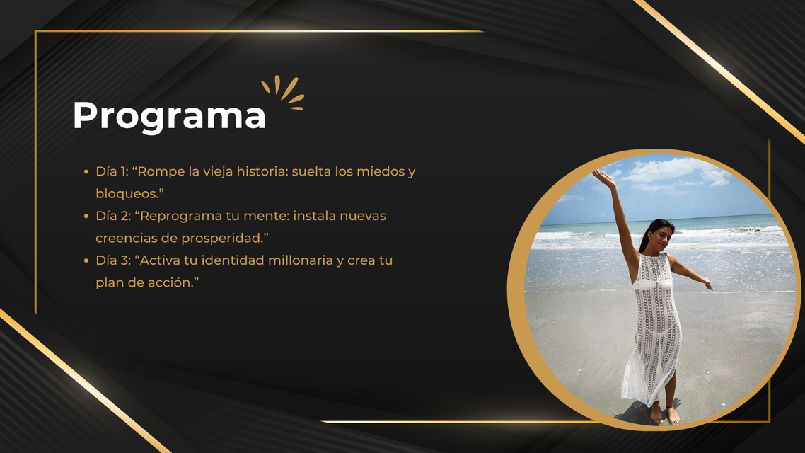 Estas lista para llevar tu vida a otro nivel? Este intensivo no es teoría suelta. Es un proceso práctico para romper patrones, reprogramar creencias y activar tu identidad millonaria.