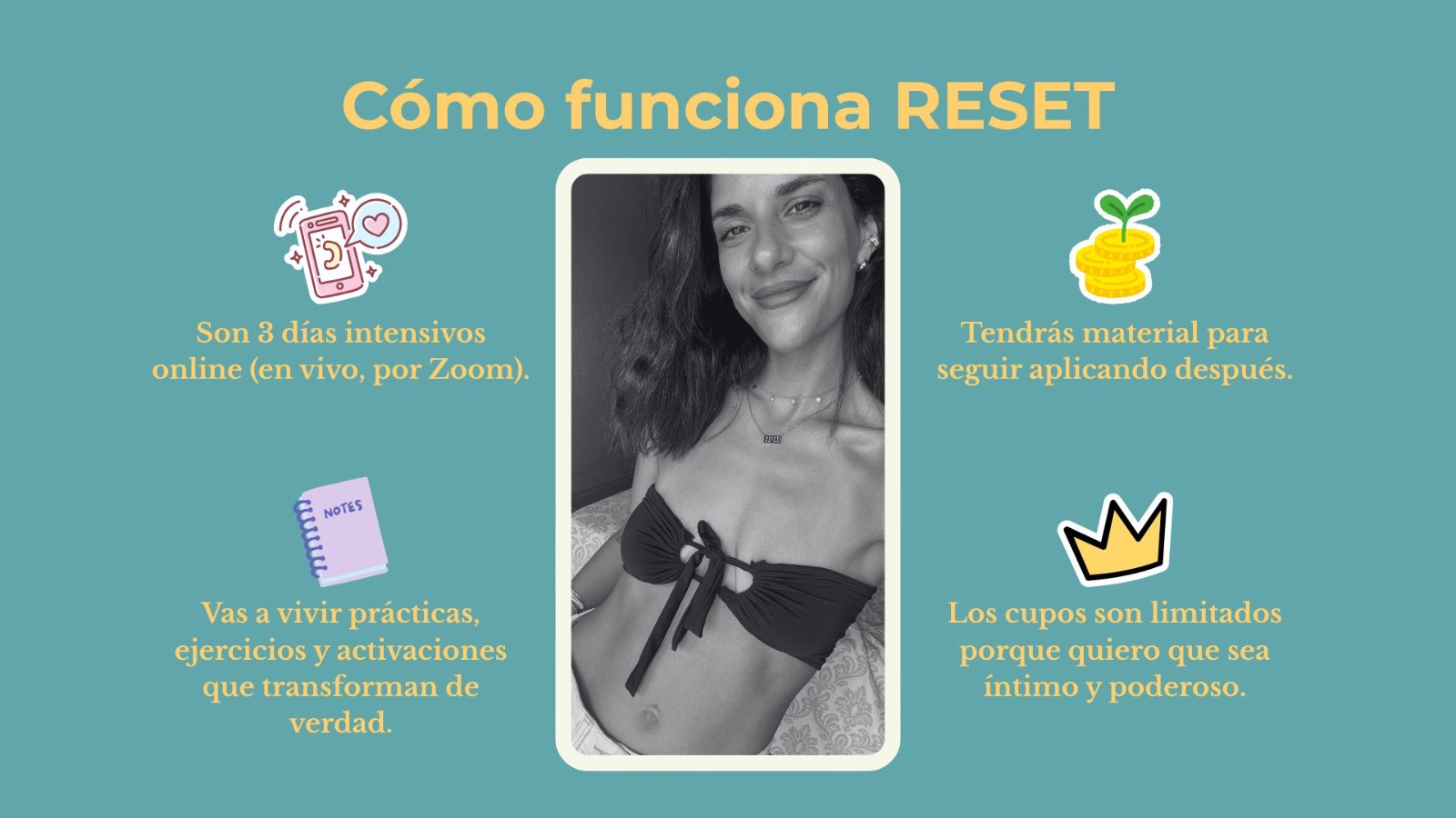 ✨ El bonus es tu kit de acompañamiento para que RESET siga trabajando en ti mucho después de terminar el intensivo.